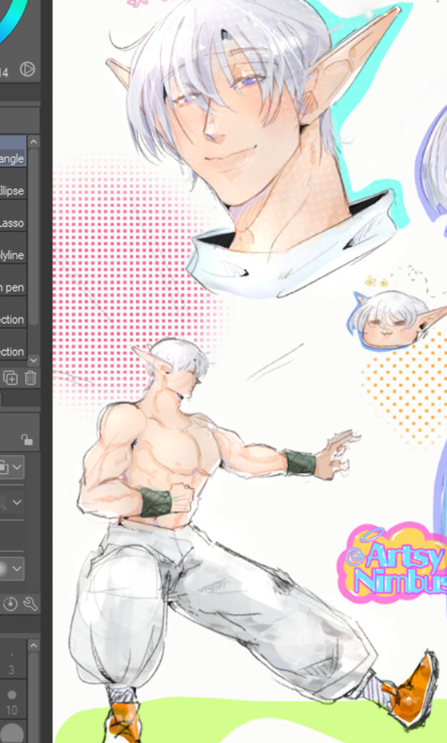 I really like anime!! The anime's that really got me wanting to draw were mainly Sailor Moon, Outlaw Star and Yu Yu Hakusho. 90's anime really had me honing into practiciing its style and aesthetic-- currently Revolutionary Girl Utena and Castlevania are my style obsessions.✦. What programs do you use?